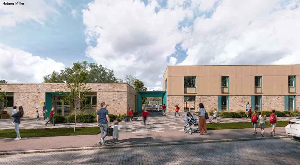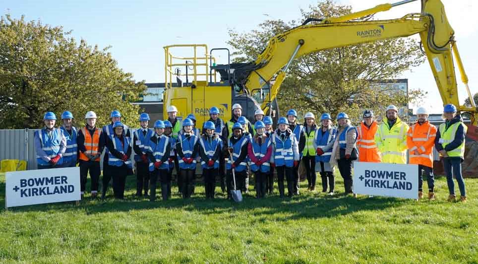Main contractor Bowmer + Kirkland has officially broken ground on the three-storey school building following completion of site preparations. Representatives from the Depa