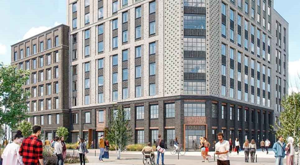 Domis Construction has broken ground on Podium, a £120m build-to-rent scheme in Trafford, Greater Manchester.