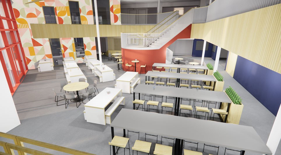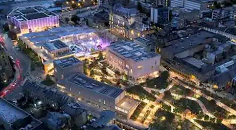 Phase 1 includes a new library hub, food hall and public square, with completion planned for summer 2026. The library will also accommodate the West Yorkshire Archive, and