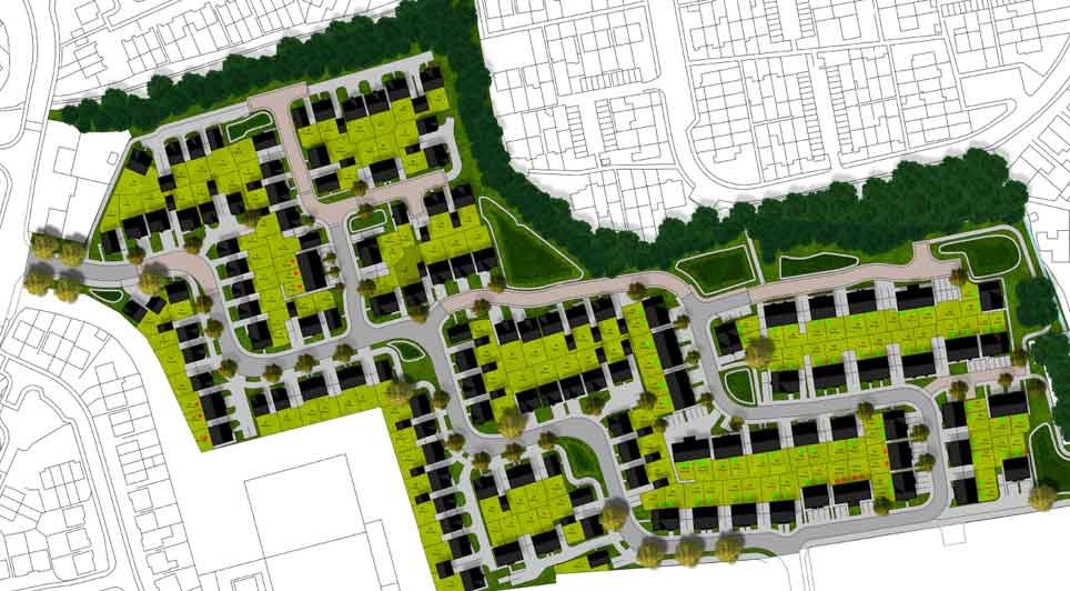 The 27-acre site will be transformed into a new residential neighbourhood, with more than half retained as public open space and woodland.