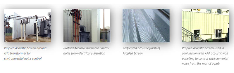 Acousticabs Industrial Noise Control LtdAcousticabs Profiled Screens are designed for use where a large acoustic barrier is required on a permanent basis around fixed external noise sources. The profiled acoustic system is suitable for all types of major environmental noise control. Typical applications are noise control barriers around electrical substations, air handling equipment and delivery areas for supermarkets and factories. Screens are a composite construction built around a core of noise absorbing acoustic slab loaded with high density Acousticurtain. The level of acoustic performance is tailored to suit the application by altering the core make up. The outer surface of the screen is faced with profiled steel. The inner surface is faced with APP profiled acoustic liners. The acoustic core is protected with a water repellent membrane. Depending on size and environmental conditions, screens may be supported on a concealed internal RHS frame or on exposed hot rolled structural steelwork.